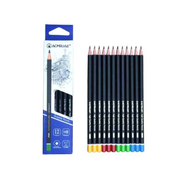 Acmeliae HB Graphite Pencils (43510) 12pcs Box is a dependable writing and drawing set designed for students, offices, and everyday use. Equipped with balanced HB graphite, these pencils deliver smooth, clear lines suitable for note-taking, sketching, and light shading. The sturdy wooden barrel sharpens easily and helps reduce lead breakage, while the comfortable hexagonal design ensures a firm grip during long writing sessions. This value pack of 12 pencils is ideal for school bags, offices, and home stationery needs.