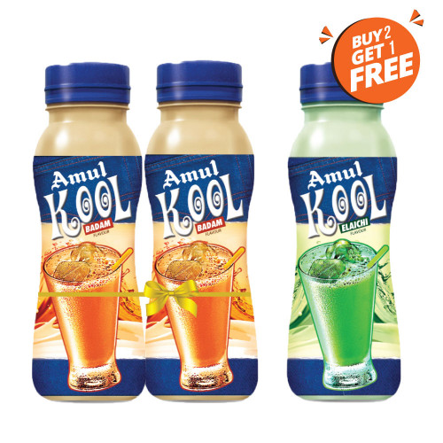 "Amul Brings you buy 2 Get 1 Free. The Combo contains 2 Amul Kool Badam & Get Amul Kool Cardamom 200ml Free!