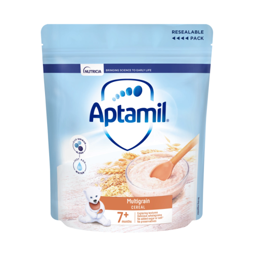 Aptamil Multigrain Cereal (From 7+ Months) 200gm is specially designed to support your baby’s growing nutritional needs during the weaning stage. Made with a balanced blend of carefully selected grains, this wholesome cereal helps introduce varied textures and tastes while supporting healthy development. Enriched with essential vitamins and minerals such as iron, calcium, and vitamin D, it contributes to normal brain development, strong bones, and overall growth. The smooth yet slightly textured consistency is ideal for babies aged 7 months and above who are ready for more advanced foods. Aptamil Multigrain Cereal is easy to prepare, gentle on tiny tummies, and free from artificial colors and preservatives. It supports your baby’s natural immunity and digestion while helping build healthy eating habits from an early age. A trusted choice for parents seeking nutritious, high-quality baby food for daily feeding routines.