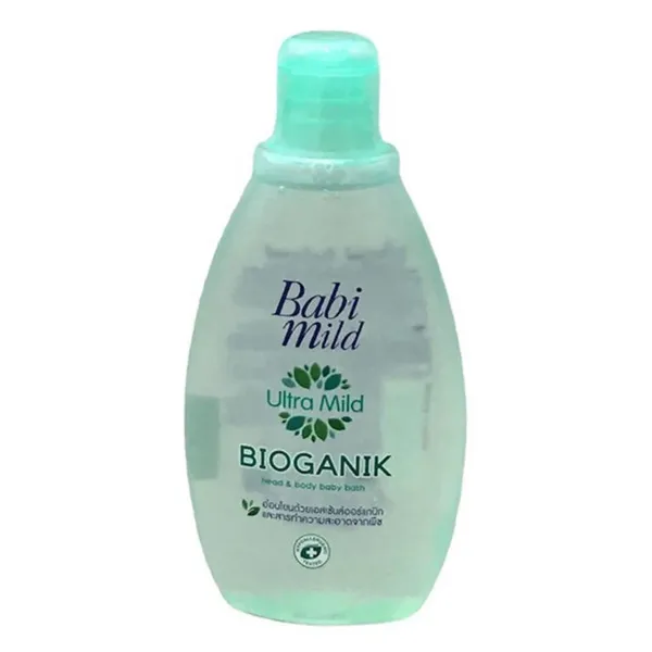 Babi Mild Bioganik Organic Natural Head & Body Baby Bath (180ml) is a gentle 2-in-1 shampoo and body wash from Thailand, specially formulated for newborns and infants. It features a bio-organic, pH-balanced, and tear-free formula enriched with natural ingredients like Oat Bran Extract and Glycerin to cleanse, moisturize, and soothe baby's delicate skin and scalp. The light, non-sticky lather rinses off easily, leaving skin soft and lightly fragranced — making it a convenient and safe choice for daily bath time.