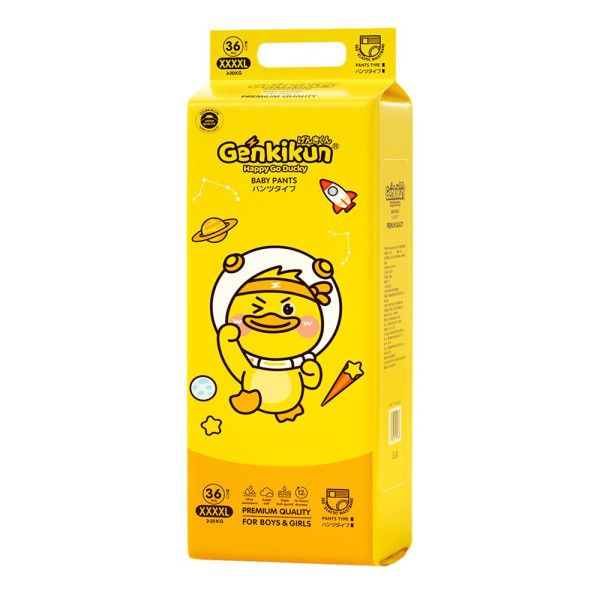 Genkikun Premium Baby Diapers Pant 4XL (36 Pcs) is specially designed for growing babies weighing over 20kg, offering reliable protection and superior comfort for all-day use. Made in Japan, these premium pant-style diapers feature a convenient pull-up design that makes wearing quick and hassle-free, especially for active babies who are always on the move. The ultra-soft and breathable fabric ensures gentle care for sensitive skin, while its hypoallergenic and baby-safe materials help reduce the risk of irritation or rashes. With up to 12 hours of leak-proof dryness, parents can feel confident about overnight and extended wear. The comfortable, flexible waistband provides a secure yet snug fit without restricting movement, making this 4XL pack of 36 pieces an ideal choice for parents seeking long-lasting dryness, safety, and comfort in a premium baby diaper. Do you like this personality?