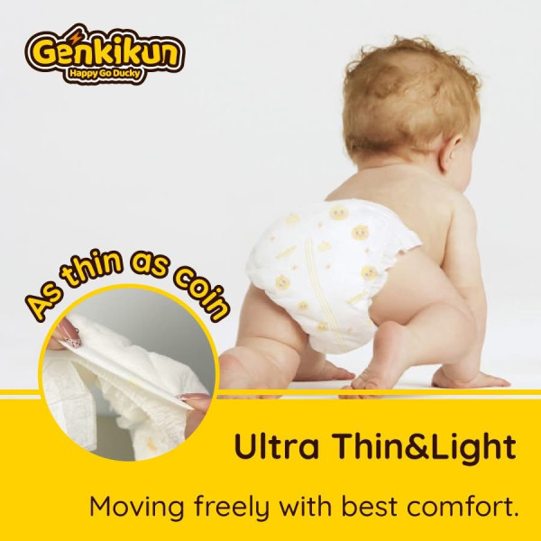 The Genkikun Baby Diapers Pant M (54 Pcs) is a premium-quality diaper specially designed for babies weighing 6–11kg, offering reliable comfort, protection, and care inspired by Japanese diaper technology. Crafted with an ultra-soft cottony topsheet, it feels exceptionally gentle on delicate baby skin, making it ideal for daily and overnight use. The advanced Japan-origin air-flow layer and skin-friendly breathable materials help keep your baby cool, fresh, and irritation-free throughout the day. Its powerful 3D bubble core ensures 12+ hours of long-lasting absorption, instantly locking in moisture to prevent sagging and leaks, even during extended sleep. Designed in an easy-to-wear pant style, it features a 360° stretch waistband for a secure yet flexible fit that moves comfortably with active babies, along with a premium secure fastening system for added leak protection. Parents will appreciate the convenient wetness indicator line, which clearly signals when a change is needed. With its anti-rash, hypoallergenic, and dermatologist-tested construction, the Genkikun Baby Diapers Pant M delivers dependable dryness, superior comfort, and peace of mind in every pack of 54 pieces, making it a trusted choice for caring parents.