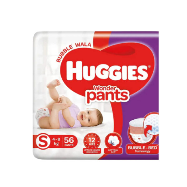 The Huggies Wonder Pant System Baby Diaper (4–8 kg) – 56 Pcs is specially designed to provide superior comfort, dryness, and protection for small babies. Its pant-style design makes diaper changes quick and hassle-free, while the soft and breathable materials ensure gentle care for your baby’s delicate skin. The diaper features a 360° stretchable waistband that fits snugly around the baby’s waist, allowing free movement during play or sleep. With its highly absorbent core, it quickly locks away moisture to keep the baby dry for longer periods and reduce the risk of leaks. The wetness indicator helps parents easily know when it’s time for a diaper change, making daily care more convenient. Designed for babies weighing 4–8 kg, this pack of 56 diapers offers reliable protection, comfort, and hygiene for everyday use.