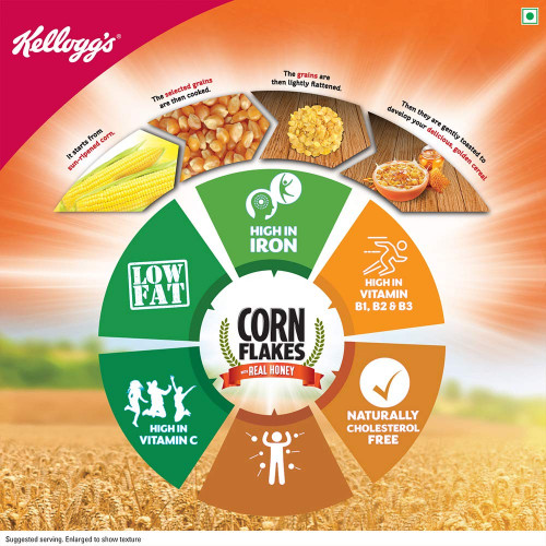 Kellogg’s Corn Flakes with Real Honey is a tasty, nourishing and wholesome breakfast at its very best. Give yourself and your family the goodness of honey coupled with corn flakes every morning. This is a Vegetarian product.
