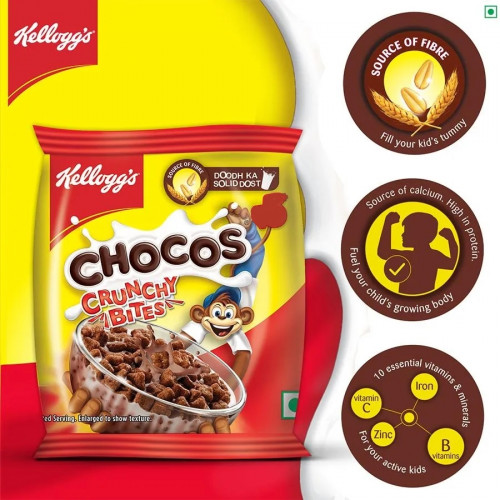 • Kellogg's Chocos Crunchy Bites is a Solid & Nourishing food for your kids. O It is enriched with key essential vitamins and minerals. Kellogg's Chocos Crunchy Bites is a source of fiber, source of calcium and naturally cholesterol-free.