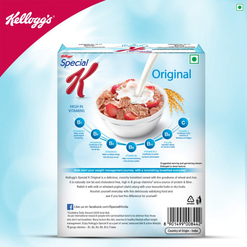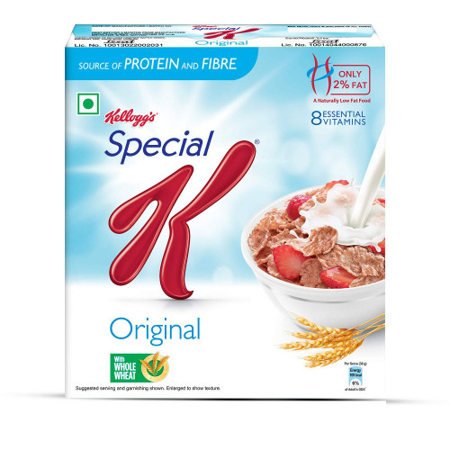 • It is 98 percent fat free and a source of fibre, moreover, kellogg's special K is fortified with 8 essential nutrients like vitamins A, C and B vitamins including folic acid