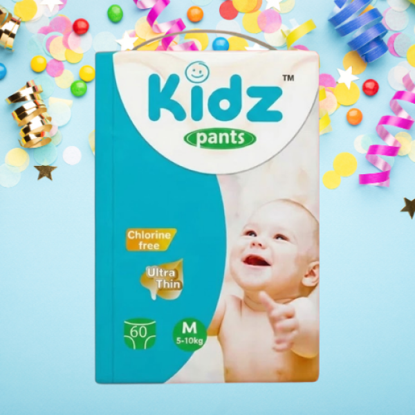 Kidz Baby Diaper Pant System Medium is specially designed for babies weighing between 5 and 10 kg, providing comfort, flexibility, and reliable protection. Its pant-style design allows easy wearing and removal, giving your baby freedom to move while staying dry.