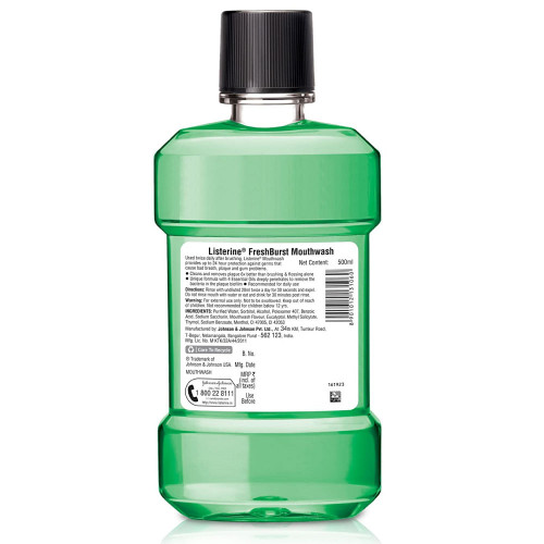 Did you know? Brushing cleans only 25% of your mouth. Germs left behind in your mouth may cause bad breath, plaque and gum problems. Listerine Freshburst Mouthwash reaches all parts of your mouth and removes 99.9% germs to help prevent gum problem, bad breath, & plaque.