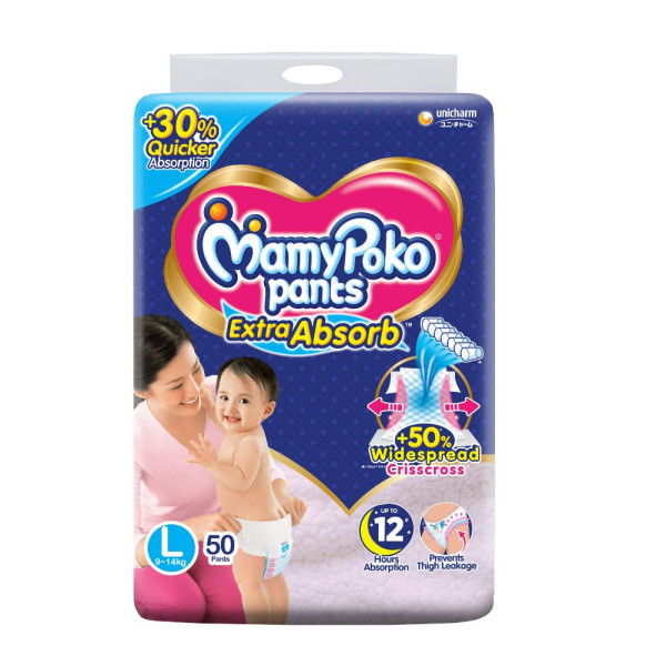 MamyPoko Pants Large 9–14 Kg 50 Pcs, made in India, are premium pant‑style diapers designed to keep your baby comfortable, dry, and happy throughout the day. Suitable for babies weighing between 9 and 14 kg, these diapers feature an ultra‑absorbent core that quickly locks in moisture, helping reduce leaks and long stretches between changes. The soft, breathable material is gentle on delicate skin, while the stretchy waistband and snug fit allow freedom of movement for active toddlers. With 50 pieces in the pack, MamyPoko Pants Large offer excellent value and convenience for everyday use, whether you’re at home or out and about. Trusted for dependable protection and comfortable wear, these diapers help make diapering easier for both parents and babies alike.