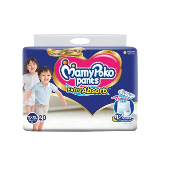 MamyPoko Pants XXXL 18–35 Kg 20 Pcs, made in India, are specially designed pant‑style diapers that deliver reliable comfort, superior absorbency, and dependable dryness for larger, active toddlers. Perfectly sized for children weighing between 18 and 35 kg, these diapers feature an ultra‑absorbent core that quickly locks in moisture to help keep your little one dry through playtime, naps, and nighttime rest. The soft, breathable material is gentle on delicate skin, while the flexible waistband and secure fit allow freedom of movement without leaks or irritation. With 20 pieces in the pack, MamyPoko Pants XXXL offer excellent convenience and value for everyday use, making diaper changes easier whether you’re at home or out and about. Trusted for consistent protection and comfortable wear, these diapers help give parents peace of mind and your growing child the comfort they need throughout the day.