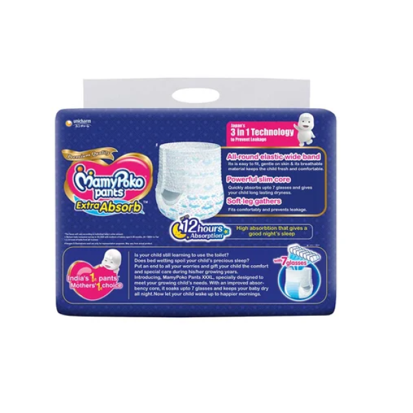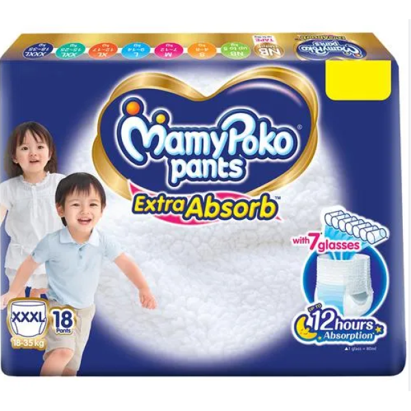 MamyPoko Pants XXXL 18–35 Kg 18 Pcs, made in India, are specially designed pant‑style diapers that offer dependable comfort, excellent absorbency, and reliable dryness for larger, more active toddlers. Perfectly sized for children weighing between 18 and 35 kg, these diapers feature an ultra‑absorbent core that quickly locks in moisture, helping keep your little one dry through playtime, naps, and nighttime rest. The soft, breathable material feels gentle on delicate skin, while the flexible waistband and secure fit allow freedom of movement without leaks or irritation. With 18 pieces in the pack, MamyPoko Pants XXXL provide great convenience and value for everyday use, making diaper changes easier at home or on the go. Trusted for their dependable protection and comfortable wear, these diapers help give parents peace of mind and your growing child the comfort they need throughout the day.