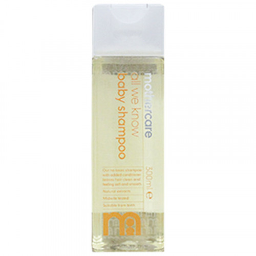 mothercare's all we know baby shampoo is a gentle no-tear shampoo with added conditioner that leaves your baby's hair clean and feeling soft and smooth