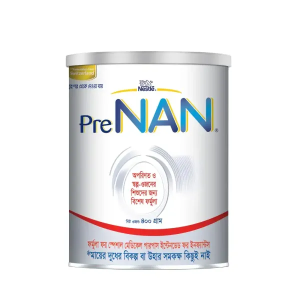 Nestlé Pre NAN Premature & Low Birth Weight Milk Formula (0–6 Months) 400gm Tin is a specialized infant formula designed to meet the unique nutritional needs of premature and low birth weight babies. Developed by Nestlé with advanced scientific research, this formula provides carefully balanced proteins, fats, carbohydrates, vitamins, and minerals to support catch-up growth and healthy development during the critical first months of life. It is enriched with DHA and ARA for brain and eye development, nucleotides to strengthen immunity, and essential minerals like calcium and phosphorus to support bone formation. The formula is gentle on delicate digestive systems, ensuring easy absorption and tolerance. Packaged in a 400gm tin, it guarantees freshness, safety, and convenience for parents. Trusted worldwide and produced under strict quality standards, Nestlé Pre NAN is recommended by pediatricians as a reliable choice for premature and low birth weight infants who require specialized nutrition.