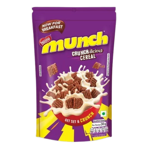 Nestlé Munch Breakfast Cereal Pouch 120g is a crunchy, chocolate-coated cereal made with whole grain wheat, offering a delicious and energizing start to the day. Fortified with essential vitamins and minerals, it provides balanced nutrition to support growth, concentration, and sustained energy release. Its rich chocolate flavor and crispy texture make breakfast fun and satisfying, while the convenient 120g pouch size is perfect for quick servings, travel, or snacking on the go.