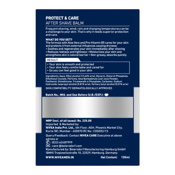 • Special moisturizers, Vitamins and Aloe Vera ensure your skin looks healthy and well cared-for.