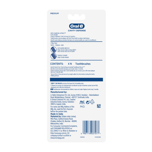 Oral B Cavity Defense 123 Black Toothbrush with charcoal extract- Medium Toothbrush - 4 Piece