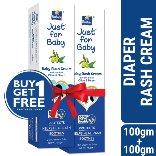 Parachute Just for baby Baby Rash Cream is specially formulated with Olive, Neem and Zinc Oxide to help repair baby’s skin from diaper rash in 3 ways.