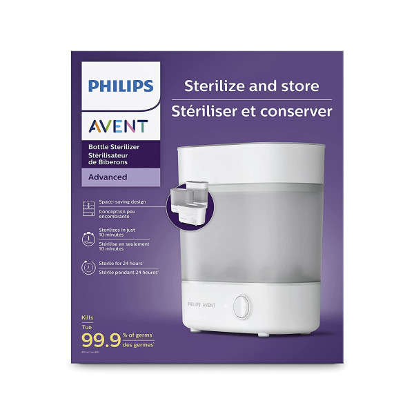 The Philips Avent SCF 291/00 Advanced Baby Bottle Sterilizer is a highly efficient and reliable solution for keeping your baby’s feeding equipment safe and hygienic. Designed to kill 99.9% of harmful germs and bacteria without the use of chemicals, this sterilizer ensures a safe feeding environment for your little one. It operates with remarkable speed, sterilizing bottles and accessories in just 6 minutes and features an automatic shut-off function for added safety and convenience. Once sterilized, the contents remain sterile for up to 24 hours if the lid is unopened, making it perfect for preparing feeds in advance. The sterilizer boasts a 3-in-1 adjustable modular design, allowing you to easily fit a variety of bottles, breast pumps, and accessories, and at full capacity, it can accommodate up to 6 Philips Avent 11-ounce bottles simultaneously. Part of the trusted Philips Avent range, this sterilizer is made in China with its design originating in the UK, weighing 5.2 pounds and measuring 14.65 x 12.76 x 7.95 inches, making it compact yet highly functional for any nursery setup.