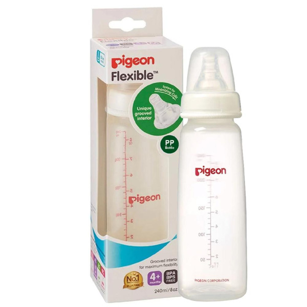 Pigeon Flexible Peristaltic Nipple Nursing Bottle PP 240 ml (M) – 26684 is a baby feeding bottle made to support a natural and comfortable feeding experience for infants aged around 4 months and above. It holds 240 ml of milk or formula and is made from polypropylene (PP) material that is lightweight, durable and BPA-free, ensuring safe everyday use. The flexible peristaltic nipple is ultra-soft and designed to flex with your baby’s tongue and sucking motion, helping encourage a natural suckling pattern similar to breastfeeding. The bottle also includes an air ventilation system (AVS™) that reduces air intake during feeding, which can help minimize gas and colic discomfort. This bottle is a practical choice for parents who want a smooth transition from breastfeeding to bottle feeding while keeping feeding time comfortable for the baby.