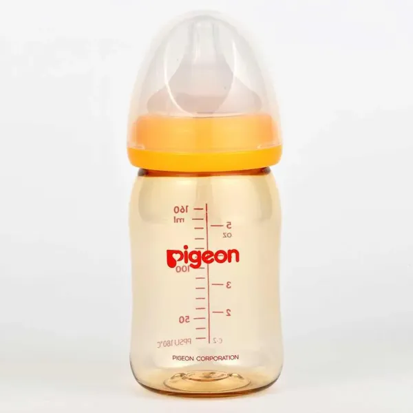 Pigeon Softouch Peristaltic Plus PPSU Bottle 160 ml – 26643 is a premium baby feeding bottle made from polyphenylsulfone (PPSU) material, which is known for its high heat resistance, excellent durability and long‑lasting clarity, making it suitable for frequent use. Its 160 ml capacity is ideal for newborns from 0 months and up. The bottle is supplied with a SofTouch Peristaltic PLUS nipple made from ultra‑soft silicone, designed to flex naturally with your baby’s tongue and support a feeding motion similar to breastfeeding. The bottle has an Air Ventilation System (AVS) that helps reduce the amount of air your baby swallows during feeding, which can help minimize gas and colic discomfort. The wide‑neck design makes the bottle easy to fill, hold, clean and sterilize, while the naturally tinted PPSU material ensures durability and safety with regular use. This bottle is free from BPA and BPS, offering a safe and reliable feeding experience for your baby