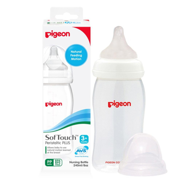 The Pigeon SofTouch Peristaltic Plus Wide Neck PP Nursing Bottle – 240ml is designed to provide a natural and stress-free feeding experience for growing babies. Made from lightweight, BPA-free polypropylene (PP), this durable bottle features the Softouch Peristaltic Plus silicone teat, which mimics the natural sucking motion to reduce nipple confusion and support smooth transitions between breast and bottle. Its wide-neck design makes cleaning and filling effortless, while the advanced air ventilation system (AVS) minimizes swallowed air to help prevent colic and discomfort. With a 240ml capacity, this nursing bottle is ideal for babies aged 3 months+, offering parents a safe, hygienic, and baby-friendly feeding solution. Trusted worldwide, Pigeon blends Japanese innovation with parent-focused design, making this bottle a reliable choice for healthy, natural feeding.