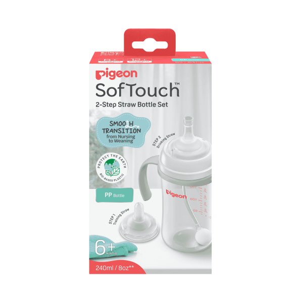 The Pigeon SofTouch BPP Step Up Straw Bottle Set – 240ml is designed to help toddlers transition smoothly from bottle to cup with ease and confidence. Made from BPA-free polypropylene (PP), this lightweight and durable straw bottle features the Step Up design, encouraging independent drinking while maintaining safety and hygiene. The soft silicone straw is gentle on gums and teeth, while the spill-proof structure ensures mess-free use both at home and on the go. With a 240ml capacity, it is ideal for growing babies and toddlers who are ready to move beyond traditional nursing bottles. Easy to clean and assemble, this straw bottle supports healthy oral development and empowers little ones to drink naturally. Trusted worldwide, Pigeon combines Japanese innovation with parent-focused design, making this straw bottle set a reliable choice for everyday feeding and hydration.