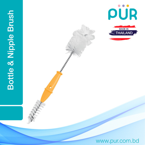 Simplify your cleaning routine with the Pur 2 in 1 Bottle and Nipple Brush (6106). Designed for versatility, this brush combines a large bottle brush and a smaller nipple brush in one convenient tool, ensuring thorough cleaning of all feeding accessories. The soft yet durable bristles remove milk residue and grease effectively without scratching, while the ergonomic handle provides a comfortable grip for easy use. Compact and practical, it helps parents maintain complete hygiene, keeping bottles and nipples spotless for safe feeding every day.