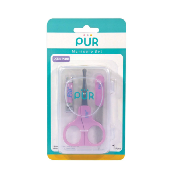 The Pur Manicure Set - 6508 is thoughtfully designed to provide a safe and convenient nail grooming solution for babies. This compact set includes a pair of scissors, a nail clipper, and a nail filer, each crafted specifically for delicate baby nails. Its ergonomic design features a comfortable grip and a thumb pad lever, ensuring that your thumb stays securely in place while trimming, which makes the process smooth and effortless. The scissors and clipper come with blunt ends to enhance safety, reducing the risk of accidental scratches or injuries. Regular use helps keep your baby’s nails clean and well-maintained, promoting hygiene and preventing unintentional scratches. Additionally, the set comes with a hygienic case, making it easy to store, clean, and carry while traveling, ensuring your baby’s nail care routine is both safe and convenient wherever you go.