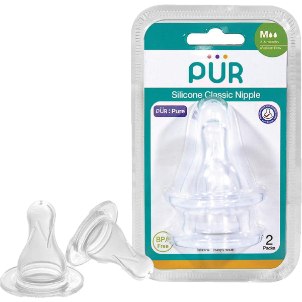 The Pur Silicone Classic Nipple M is designed for babies aged around 3 months and above, offering a comfortable and safe feeding experience with its medium flow design. Made from high-quality BPA-free, food-grade silicone, it is soft, durable, and gentle on the baby’s gums and mouth. The classic shape supports natural sucking, while the medium flow ensures smooth and controlled milk flow. It fits most standard feeding bottles and comes in a 2-piece pack, making it a practical and reliable choice for everyday use.