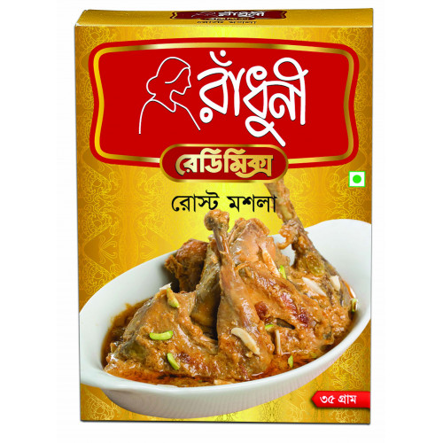Radhuni easy mix roast masala gives you the optimum taste of roast in the easiest way, without having to add any other spices. just add sour curd in preparation and edible oil in cooking with chicken.