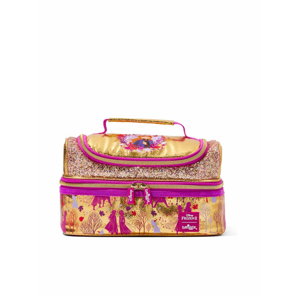 Disney's Frozen 2 Anna Double Decker Lunchbox is BPA free and has food grade safe insulated lining; it has two tiers; external easy to wipe PU fabric; silicone applique badge; embroidered character detail; and a glitter panel. W 24.5cm x H 15cm x D 15.5cm