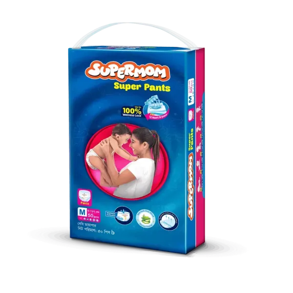 Keep your baby happy, dry, and comfortable with Supermom Baby Pant Diaper Medium (6–12 kg). Made with ultra-soft, breathable materials, these pant-style diapers provide a gentle touch on delicate skin while ensuring a secure fit. The advanced absorption layer quickly locks away moisture, keeping your baby dry and cheerful throughout the day.With reliable leak-proof protection, parents can enjoy peace of mind during playtime, naps, and overnight sleep. The pant-style design makes diaper changing simple and hassle-free, while the Super Saver Pack of 50 pcs offers excellent value and everyday reliability. Trusted by parents, Supermom Baby Pant Diaper is the perfect choice for growing babies.
