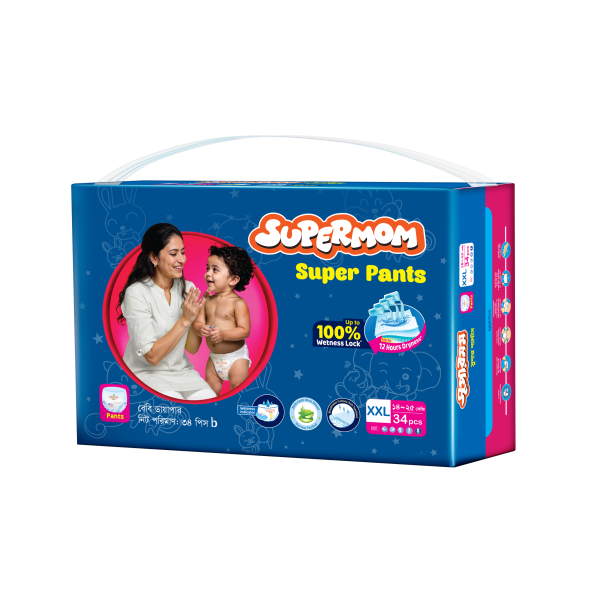 The Supermom Baby Pant Diaper – XXL is designed for babies weighing 14–25 kg, offering maximum comfort, dryness, and protection. With its pant‑style design, it ensures easy wear and removal, making diaper changes quick and hassle‑free. This Super Saver Pack of 34 pieces provides excellent value for parents who want both quality and affordability.