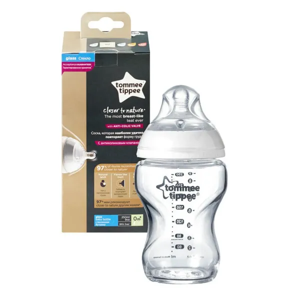 Crafted from premium glass, this 250ml feeding bottle is designed to give parents a safe, durable, and eco‑friendly option for newborn feeding. The soft, breast‑like silicone teat encourages a natural latch, helping babies transition smoothly between breast and bottle. Featuring an advanced anti‑colic valve, it reduces air intake to minimize gas, spit‑up, and fussiness. The glass body is naturally BPA‑free, easy to sterilize, and resistant to stains and odors, making it a hygienic choice for everyday use. Ergonomically shaped for comfortable holding, this bottle combines safety, practicality, and comfort for both parent and baby.